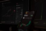Trader analyzing stock market data on smartphone and phone